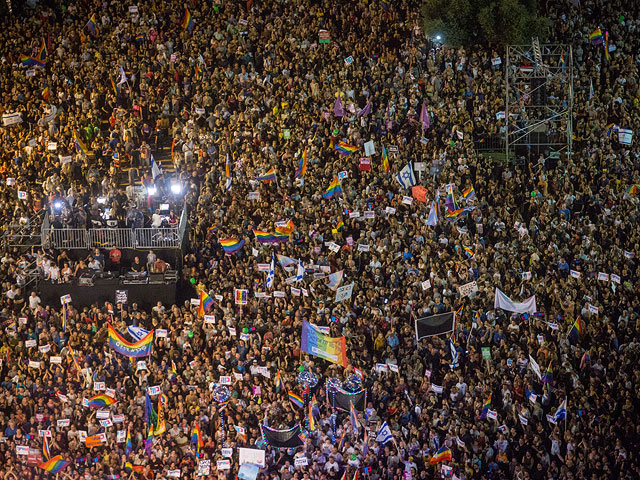 Просмотреть или сохранить оригинал: Митинг ЛГБТ на площади Рабина собрал десятки тысяч человек